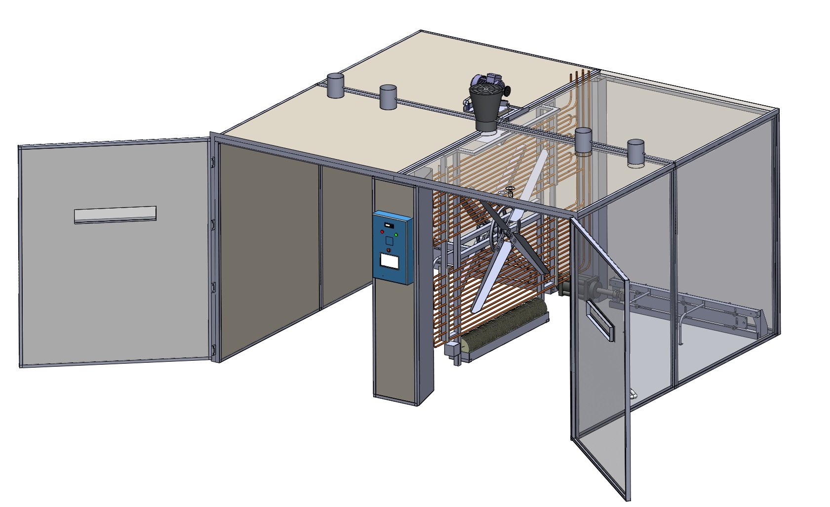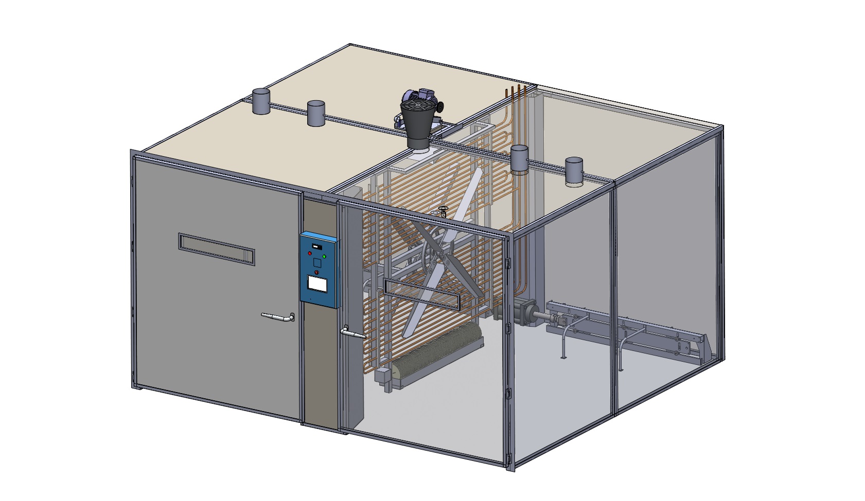 Kontrol Sistemi : PLC Software, dokunmatik renkli ekran, alarm kayıtlarını izleme, ısı, nem ve vantilasyon değerlerini grafik olarak izleme özelliğine sahiptir.